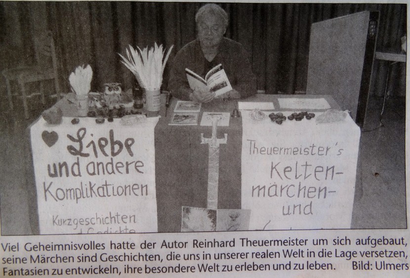 Am 30. November kommt eine Kundin an meinen Stand auf dem Gießener Weihnachtsmarkt und sagt, sie habe von meinen Keltenmärchen aus der HERBORNER Zeitung erfahren. Sie hat dann gleich