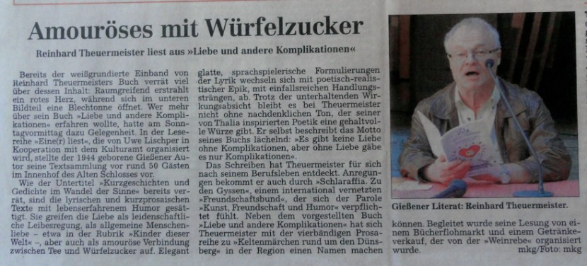 Das muss ich doch mal loswerden: Ich hatte auf der Mittelhessenschau in Gießen Ihr Buch Liebe und andere Komplikationen gekauft: Das „Tässchen Tee“ hat mir auch sehr gut gefallen, und die Beendigung der Geschichte hat mir wahre Lachsalven entlockt. Ihre Angelika